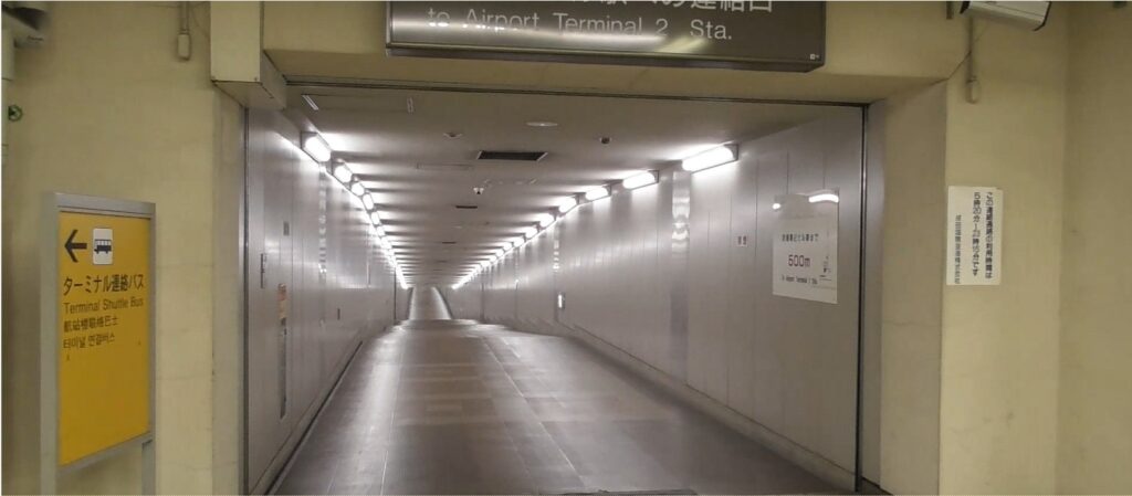 そしてすぐ横の地下通路を10分弱歩くと成田空港の第2ビルに行くことができます。