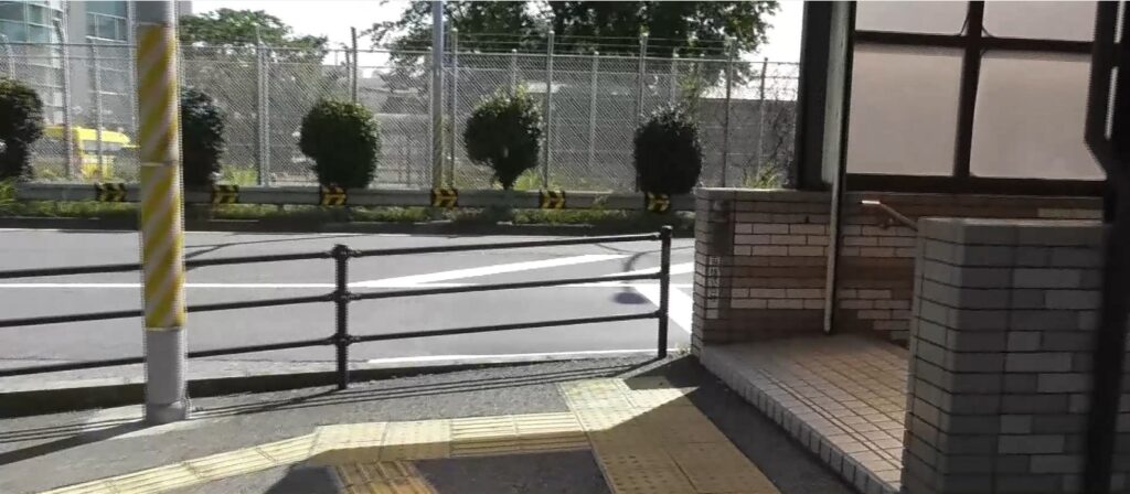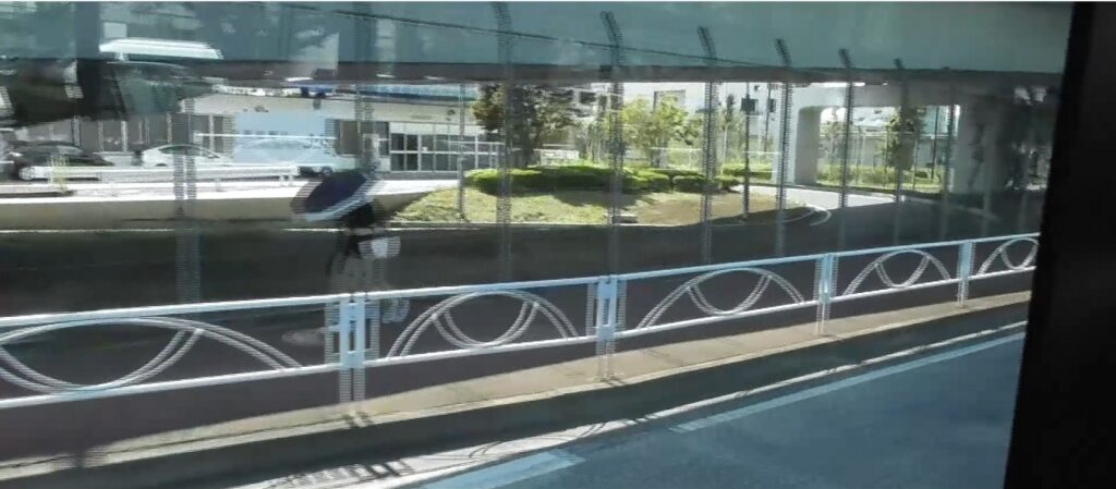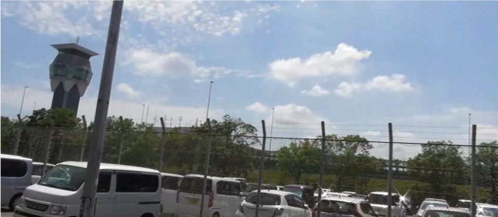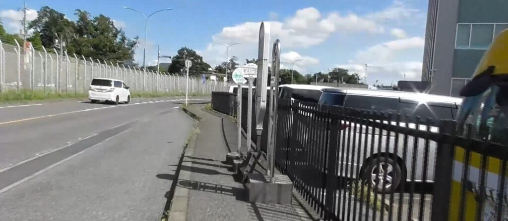 空港を囲う柵の向こう側の道路にもバス停があるので確認しに行きます。