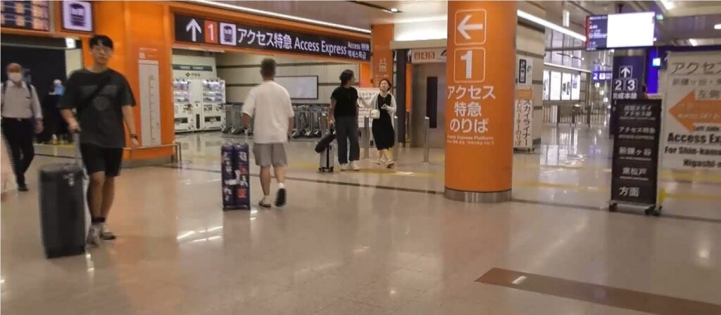 成田スカイアクセス線経由のアクセス特急に乗りたい人は左側。