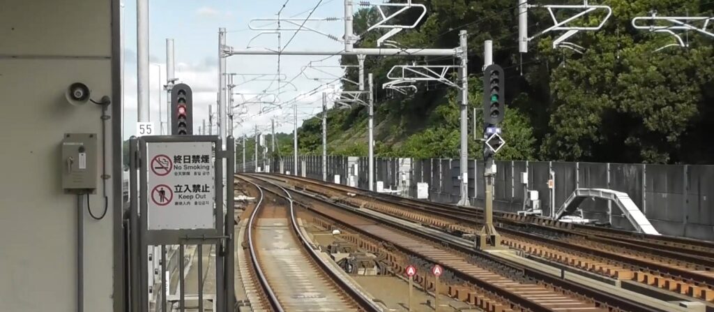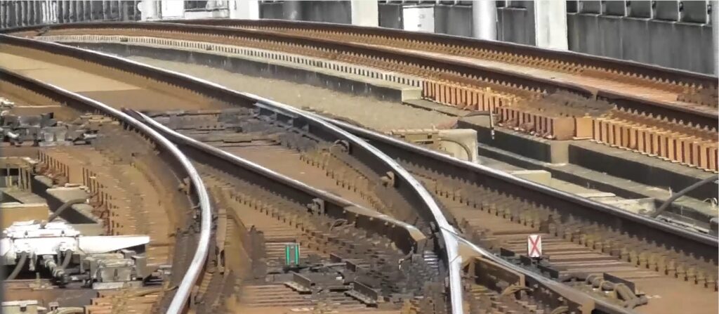 駅に到着する前に、めちゃくちゃ珍しい分岐器があります。