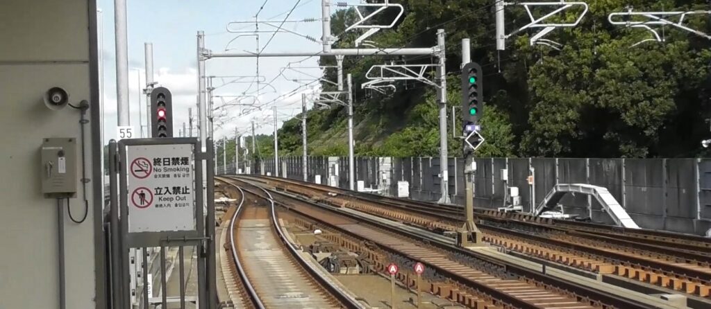 で芝山千代田駅までずーっと単線でかつ駅も線路が1つしかないので、理論上は東成田駅~芝山千代田駅間は1閉そく区間で行けることになります。