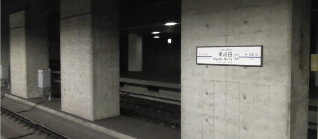 電車から東成田駅を見ると、向こう側が真っ暗のせいか余計に陰気に感じますね。