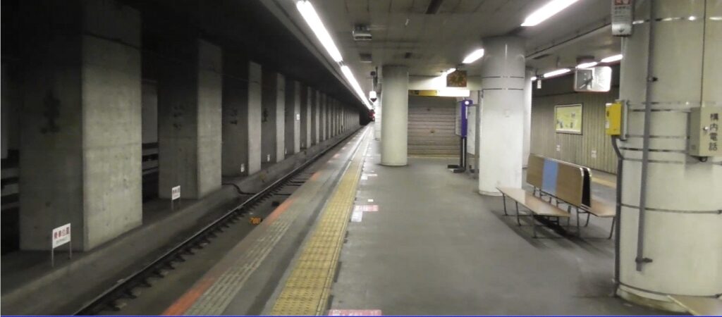 2面4線の駅ですが、見ての通りあちらのホームは電気が消されていて現在は使用されていません。
