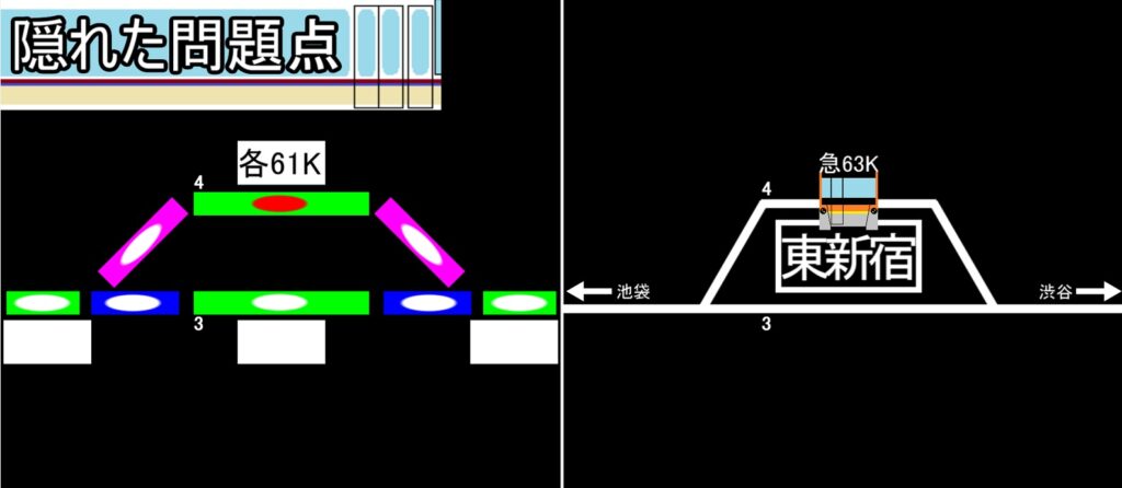 しかしながら本来は通過駅であるはずの東新宿駅でさらに停車列車専用の副本線側である4番線に進入させられている時点で、自分の電車が本当に急行電車なのか疑問に持たないのか私の感覚からしたら意味が分かりません。