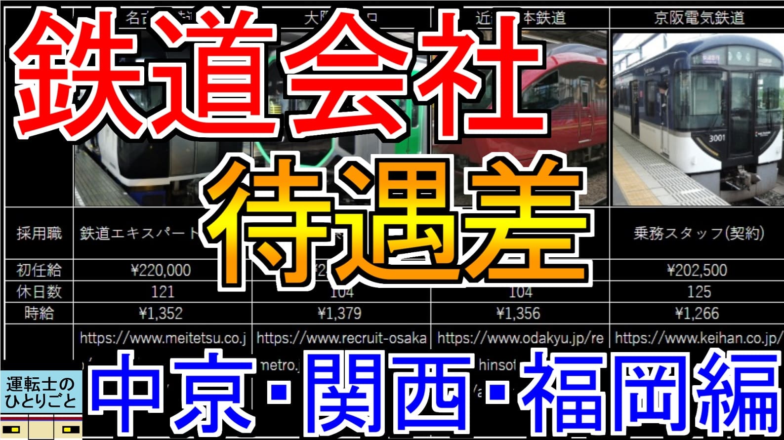 さて前回、JR系と関東大手私鉄の年収、休日数の比較を行ったわけですが、今回は関西、中京と別エリアの鉄道会社の比較を赤裸々にしたいと思います。